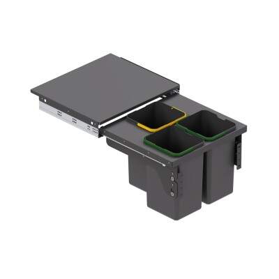 Gelince Haber VerStarax 55cm 12+12+12lt Kapağa Monte Frenli Çöp Kovası Antrasit Renk 3 Kovalı (S-2384-A)