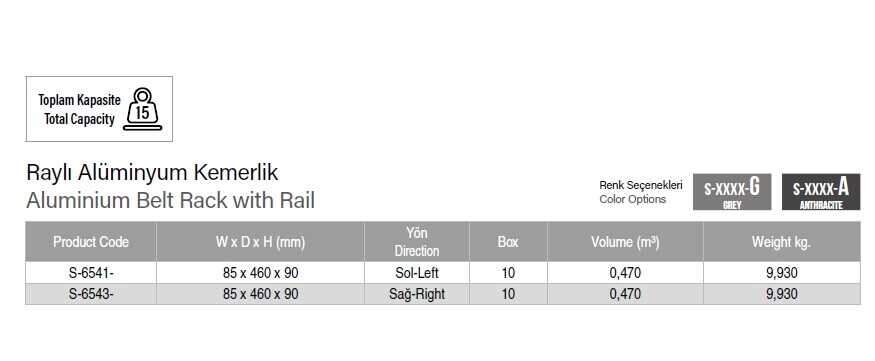 Starax Raylı Alüminyum Kemerlik Gri (S-6543-G)