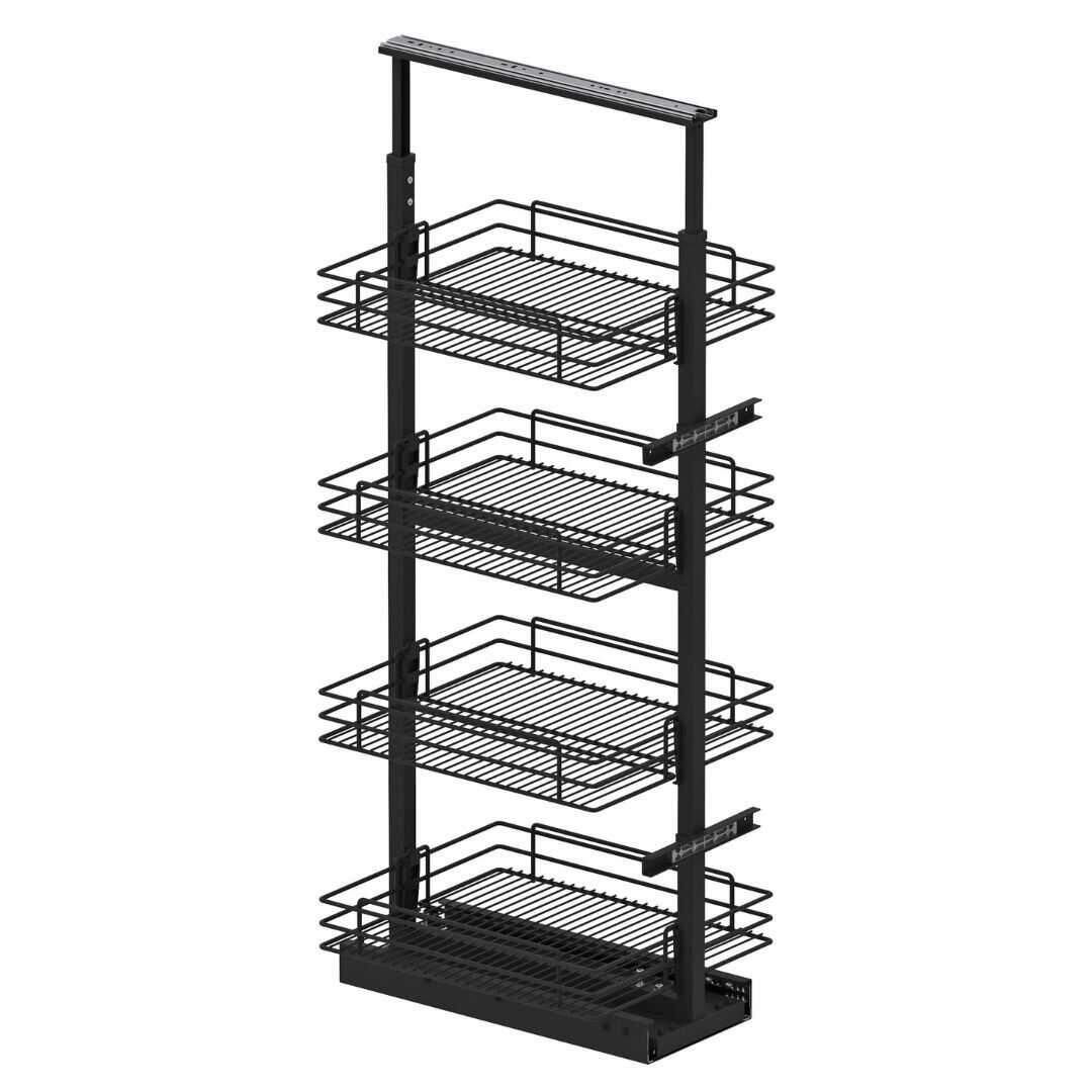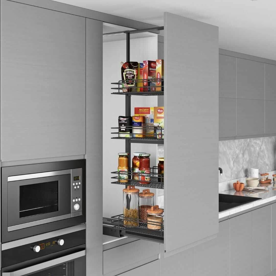 Starax 40cm Tel Hasırlı 6 Sepetli Gizli Raylı Frenli Kiler Antrasit Renk (S-1921-A)