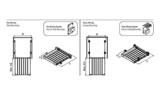 Hem Tavan Hem Yana Montaj Yapılabilir.