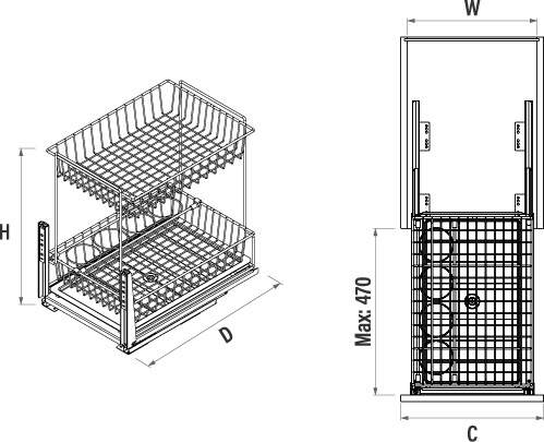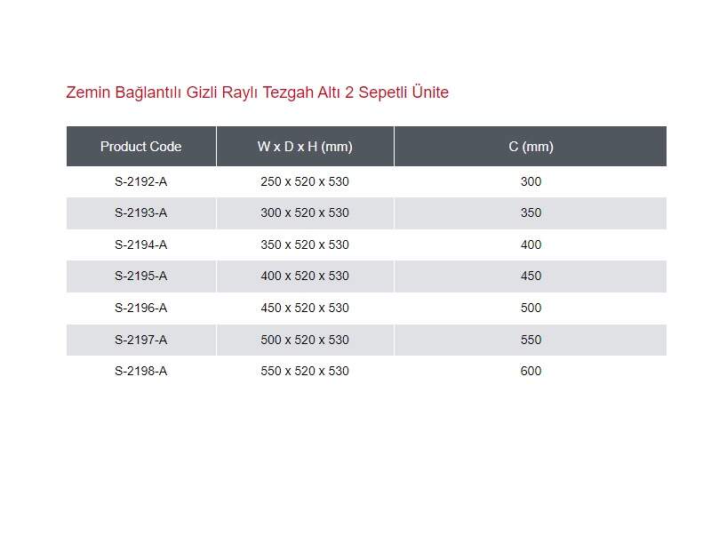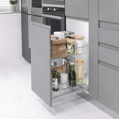 Starax 45cm Zemin Bağlantılı Tezgah Altı 2 Sepetli Ünite Krom Renk (S-2195-C)