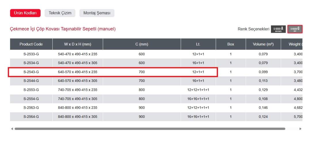Starax 2553 80cm Çekmece İçi Taşınabilir Sepetli Manuel Çöp Kovası 24+3 Litre Gri 2 Kova Modül 80cm (S-2553-G)