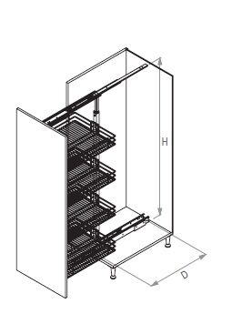 Starax 40cm Tel Hasırlı 6 Sepetli Gizli Raylı Frenli Kiler Antrasit Renk (S-1921-A)