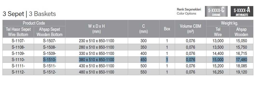 Starax 1109 Teleskopik Kiler 3 Tel Sepetli Krom Renk Modül 40cm (S-1109-C)
