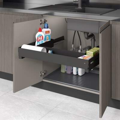 Starax Eviye Altı Çift Açılım Gizli Raylı Çekmece 80 cm Unique Box-Antrasit(S-2351-UB-A)