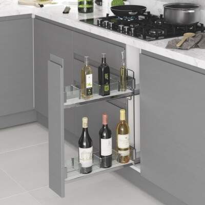 Starax 15cm Premium Kaymaz Yüzeyli Ahşap Tablalı Şişelik - Çift Açılım Krom Renk Sağ Yön (S-2661-P-A)