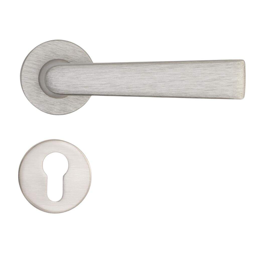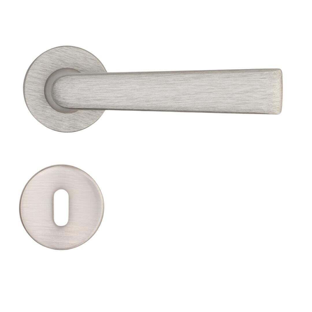 Sese Kapı Kolu Nikel/Inox Renk Ekonomik Rozetli Kapı Kolu (200-28R-21/53)