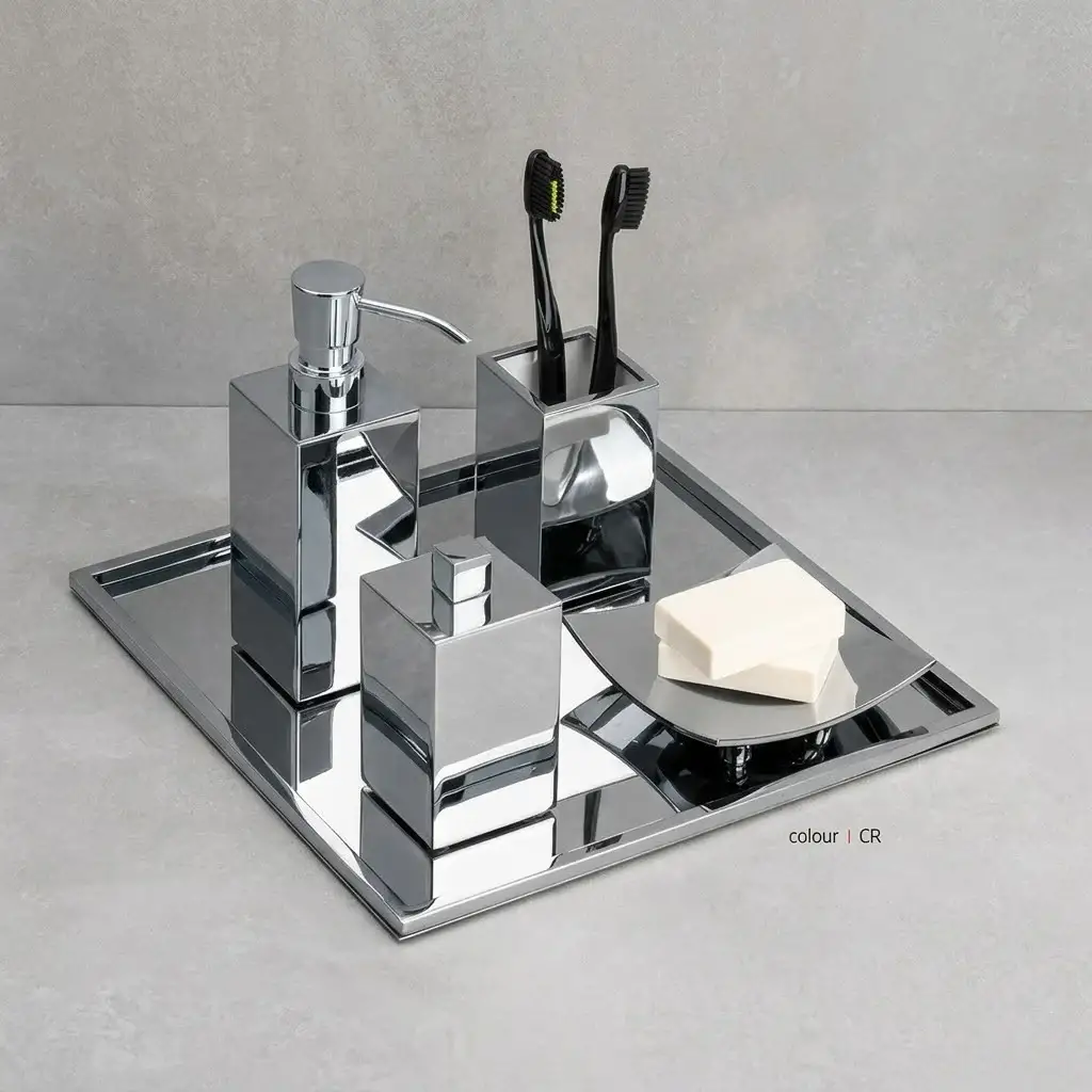 Banyo dekorasyonunuzda zarafeti ve mükemmel düzeni bir araya getiren System Banyo Tepsisi Krom Renk, şık ve göz alıcı tasarımıyla tezgahlarınıza yepyeni bir soluk getiriyor. Kromun ferah, aydınlık ve modern parlaklığı, banyonuza temiz bir atmosfer katarken; sıvı sabunluk, diş fırçalık, pamukluk ve katı sabunluk gibi aksesuarlarınızı estetik bir şekilde bir arada tutar.