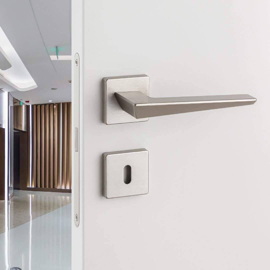Sese Kapı Kolu Nikel/Inox Renk Ekonomik Rozetli Kapı Kolu (200-28R-21/53)