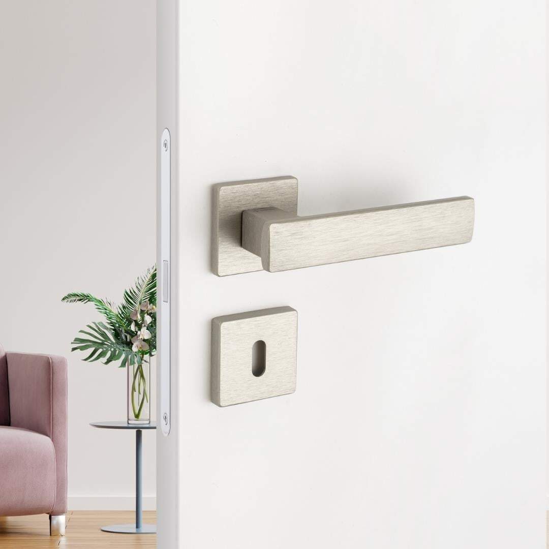 System Just Fırçalı Nikel Saten Rozetli Kapı Kolu (HA276RO21 ELX2)