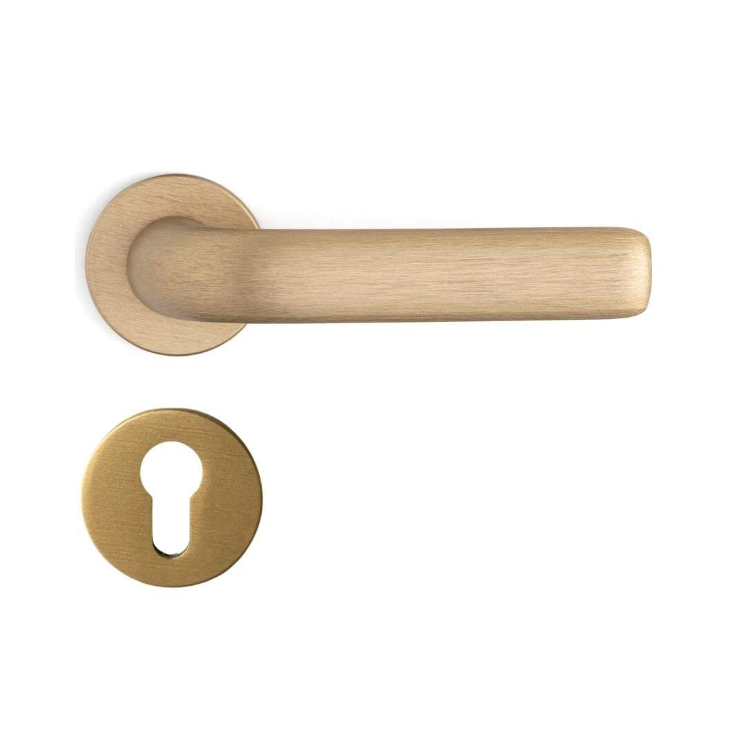 System Riven Fırçalı Mat Altın Rozetli Kapı Kolu (HA274RO22 ELX5)