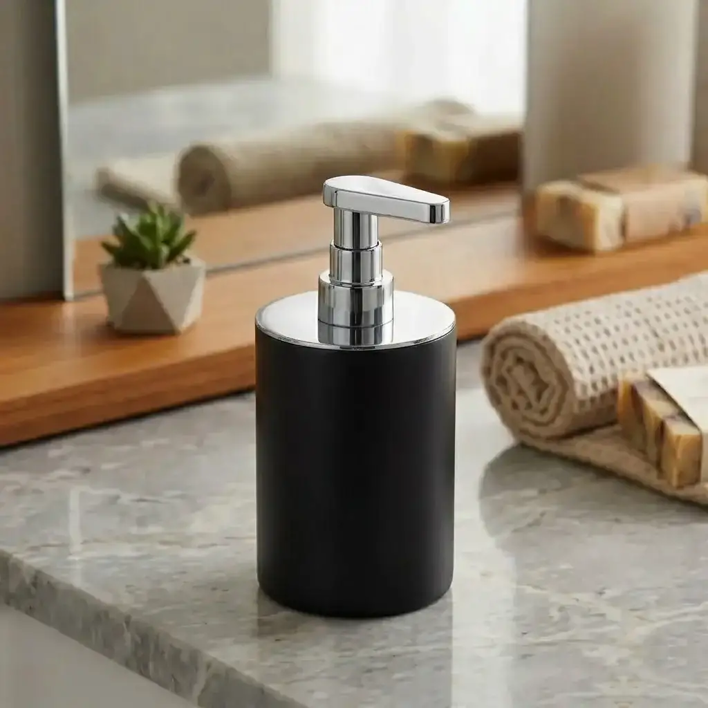 System Tezgah Üstü Siyah/Krom Sıvı Sabunluk (BA20010 001006 AL6-CR)