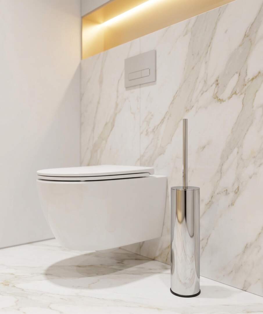 Banyo aksesuarlarında kalite ve estetiği bir araya getiren System Tuvalet Fırçalığı, minimalist tasarımı ve göz alıcı krom rengi ile banyonuzun havasını değiştiriyor. BA4018 009 CR model kodu ile sunulan bu ürün, hem ev kullanıcıları hem de profesyonel işletmeler (oteller, restoranlar, ofisler) için uzun ömürlü bir çözüm sunar.