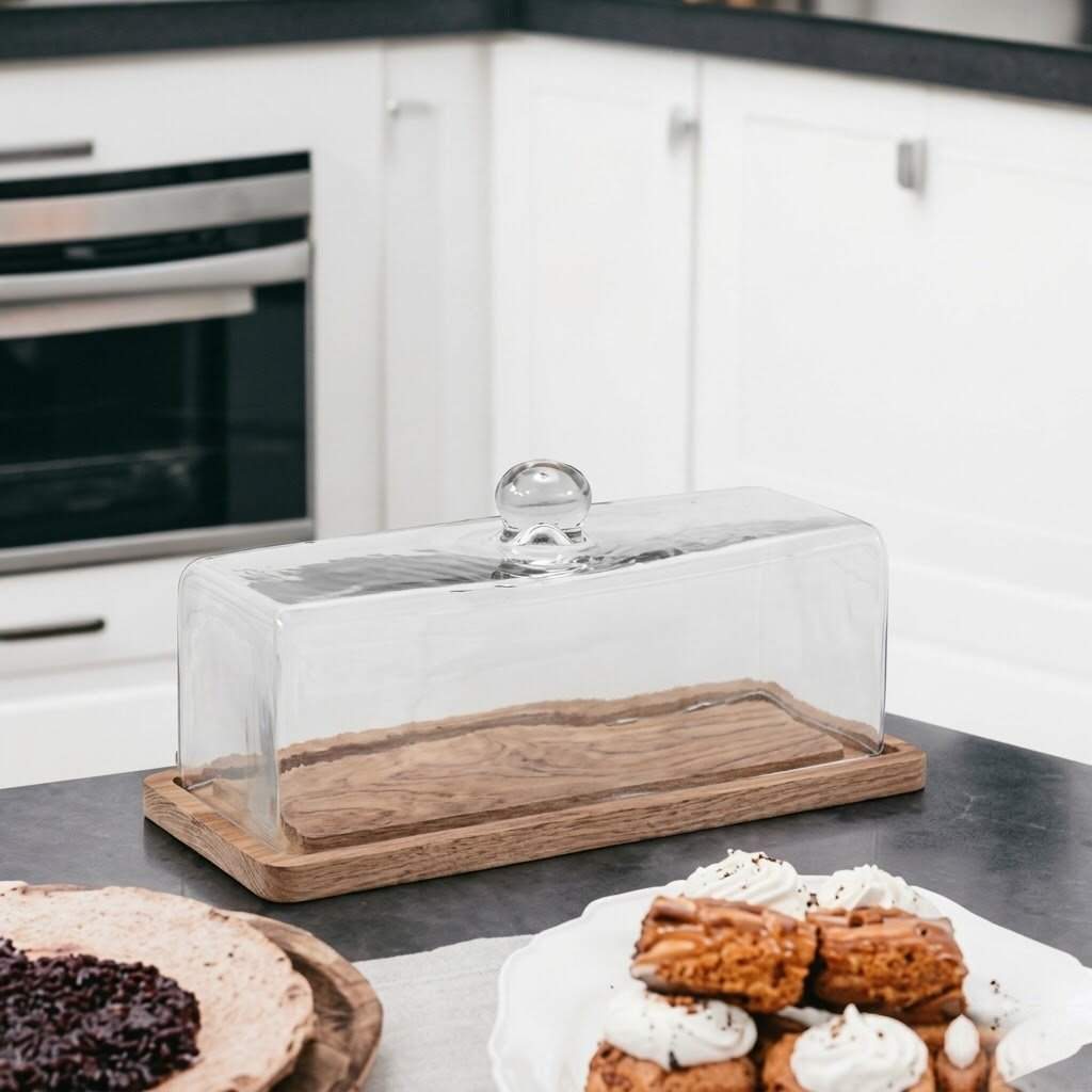 Gelince Haber VerMadera Dikdörtgen Kek Saklama Fanusu