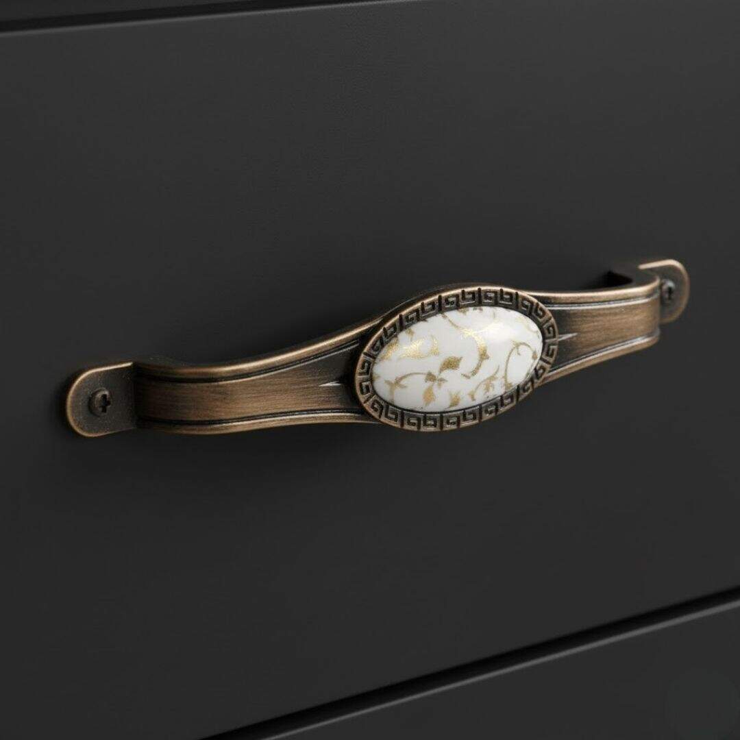 Gelince Haber VerTomurcuk Porselen Mobilya Kulbu Antik Bakır/Beyaz Renk 128mm Kulp (198-06-128-100)