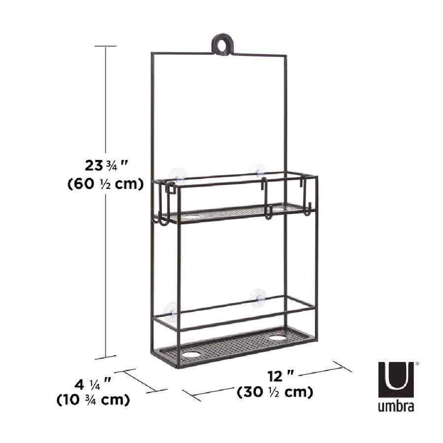 Tasarım dünyasının yenilikçi markası Umbra’nın ikonik Cubiko serisine ait bu duş arabası, geleneksel banyo raflarının ötesine geçerek hem geniş bir depolama alanı hem de estetik bir görünüm sunar. Siyah metalik dokusu ve işlevsel bölmeleriyle şampuan, sabun ve diğer banyo aksesuarlarınızı en şık şekilde organize eder.