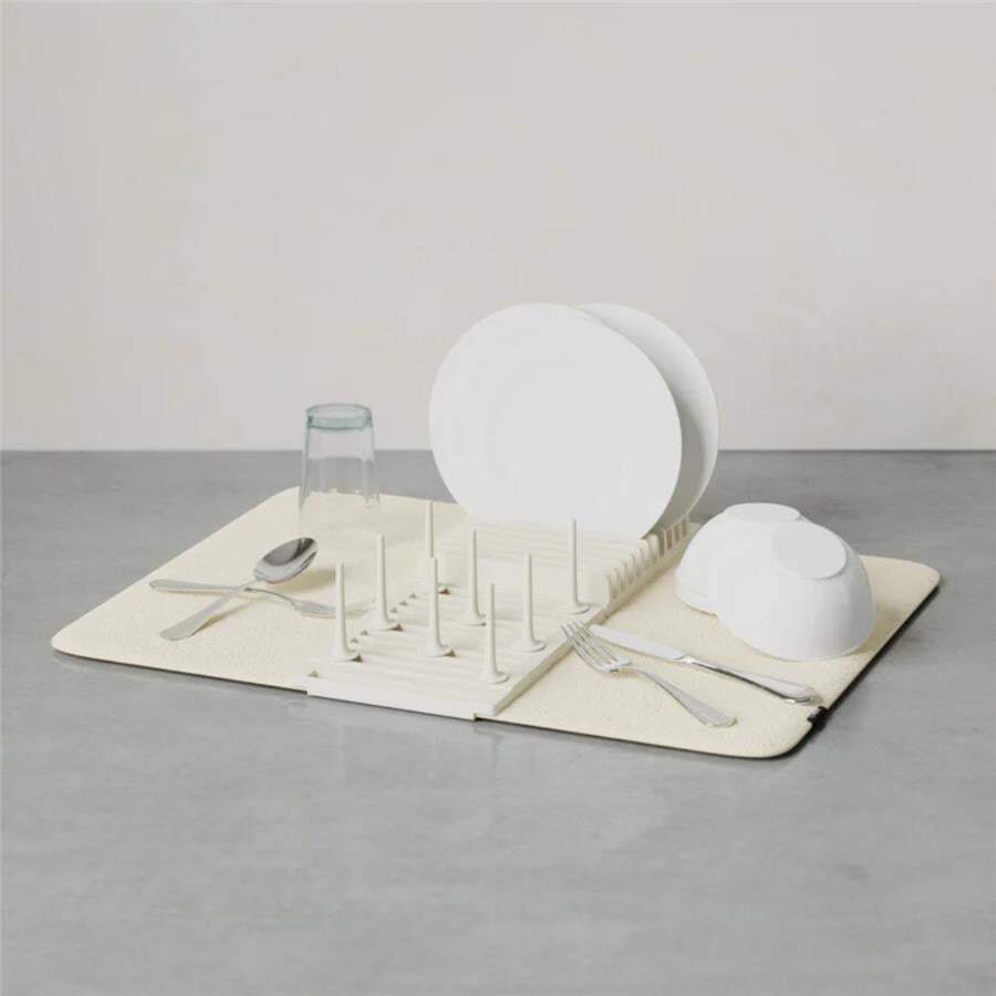 Mutfak tezgahınızdaki hantal bulaşıklıklardan kurtulun! Tasarım dünyasının yenilikçi markası Umbra’nın en çok satan ürünlerinden biri olan Udry Bulaşık Kurutmalık, süper emici mikrofiber matı ile ayarlanabilir tabak rafını tek bir şık gövdede birleştiriyor. Yumuşak krem rengiyle mutfağınıza ferah bir hava katarken, bulaşık kurutma işlemini her zamankinden daha pratik hale getiriyor.