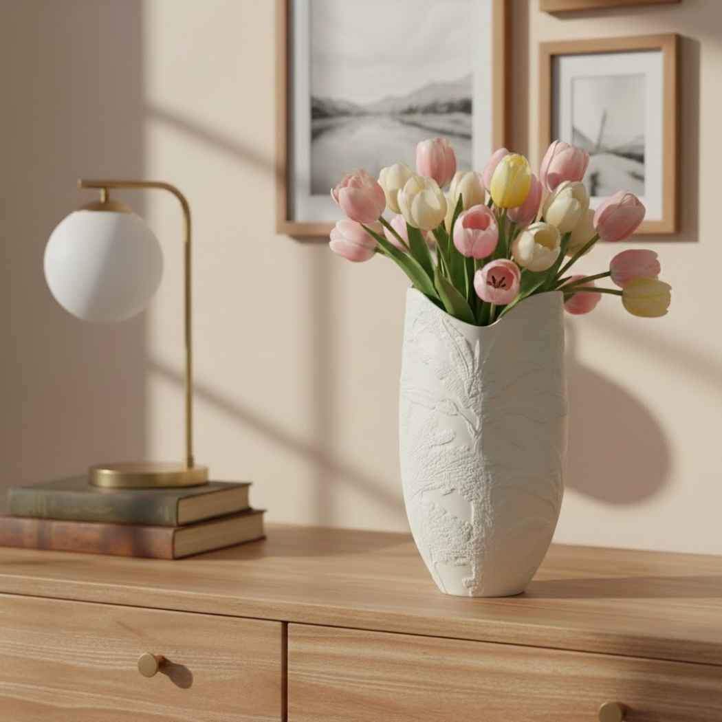Vitale Beyaz Yaprak Vazo 19*18*36 Cm (AK.JM00001)