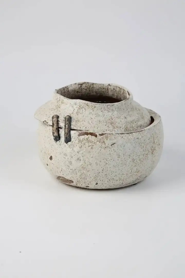 Benzersiz Sanatsal Tasarım: Yüzeyindeki birleştirilmiş veya "yamalı" görünüm, çiçekliği sıradan vazoların ötesine taşıyarak onu sanatsal bir konuşma parçası haline getirir.