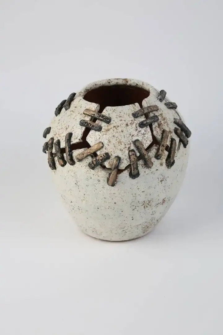 Vitale Seramik Yamalı Küp (AK.LB0098), modern dekorasyonda form ve dokuyu ustalıkla birleştiren heykelsi bir objedir. Küpün net ve keskin geometrisine karşın, yüzeyine işlenmiş olan "yama" veya birleştirilmiş parçalar izlenimi, objeye el yapımı ve sanatsal bir derinlik katmaktadır. Bu parça, minimalist mekanlara sıcaklık ve karakter katmak isteyenler için mükemmel bir seçimdir.