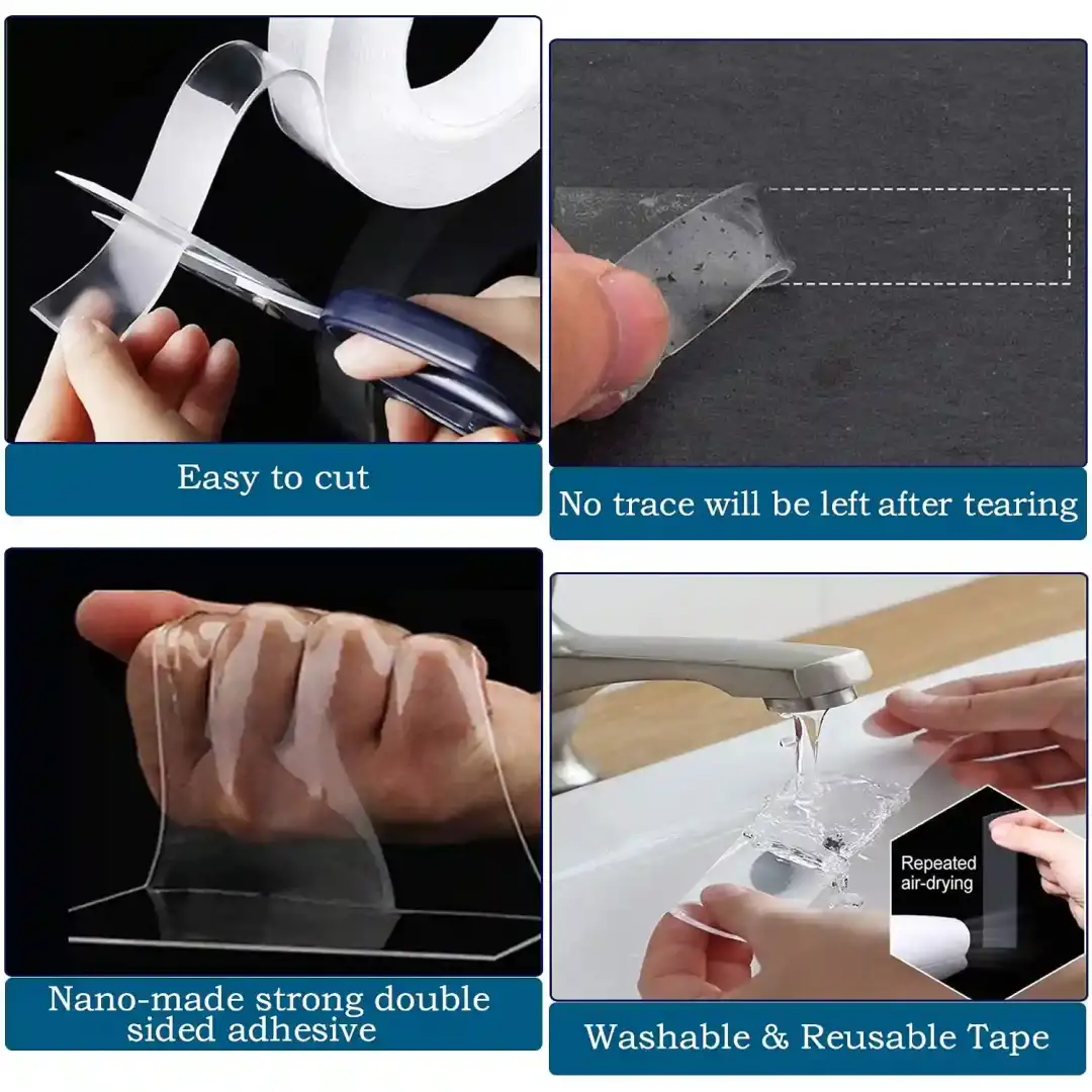 VODASEAL Sihirli Bant; Çift taraflı yapışkana sahip, yapıştırıcı veya vidaya ihtiyaç duymadan nesneleri yüzeye sabitlemek için kullanılır. Nano Teknolojisi sayesinde yüzeye çok güçlü yapışır, istenildiği taktirde yüzeyden iz bırakmadan çıkarılabilir. Yıkanabilir ve kurutularak yeniden kullanılabilir. Ahşap, metal, plastik ve cam malzemeler için idealdir. Suya dayanıklıdır. Dış mekanlarda, ıslak ve nemli ortamlarda güvenle kullanılır.